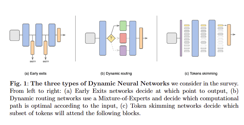 Enter dynamic neural networks (DyNN). I learnt about this body of research only very recently, so the above explanation is certainly oversimplified, but the concept is fascinating. The interest was spurred by a recent survey of the topic from some colleagues at the Danish Technical University (Ronja Guldenring and Lazaros Nalpantidis), who work in precision agricultural robotics. There is an accompanying Github repository with links to all surveyed papers and relevant implementations.