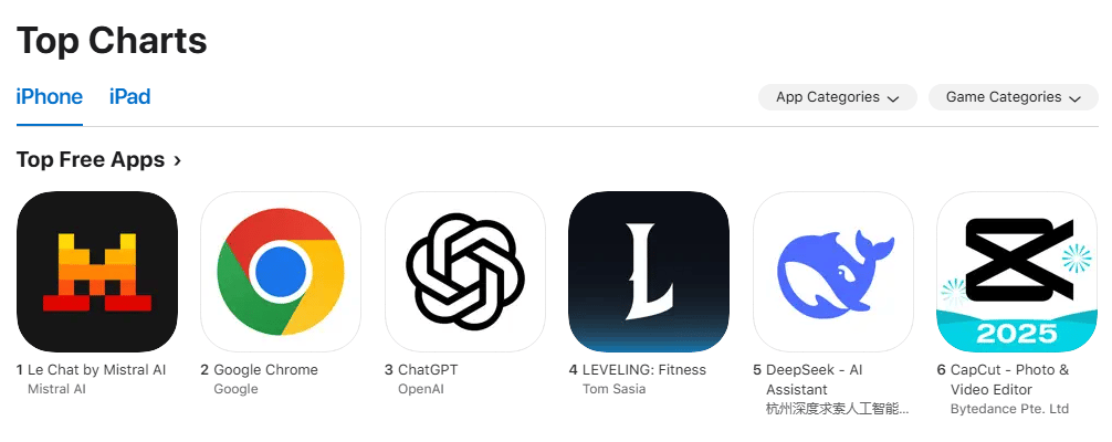The current Apple app store leaderboard for France.