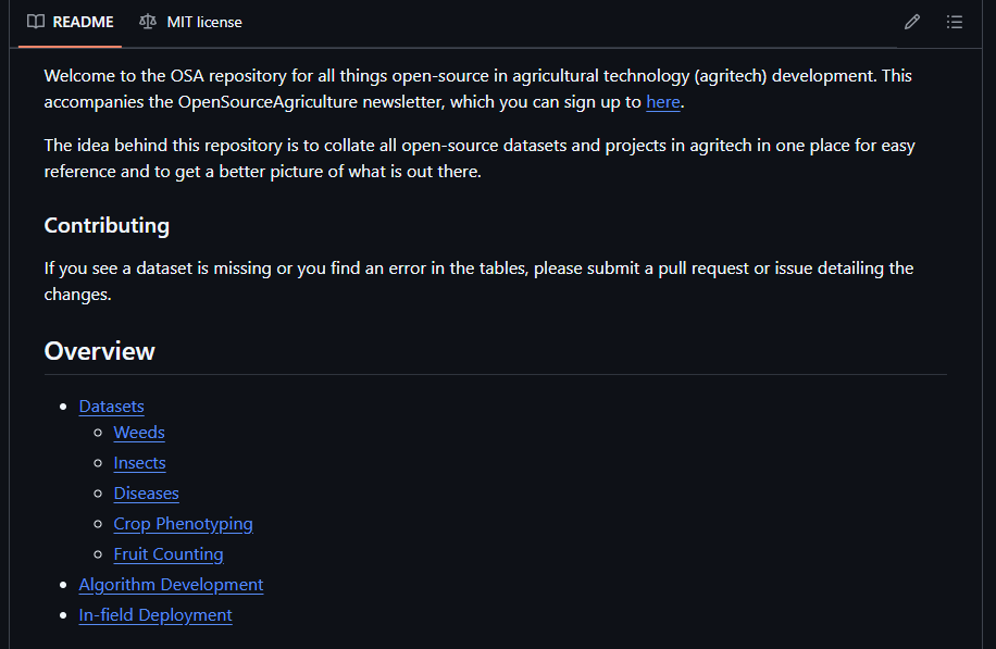 Most importantly though, I would love to make this as much of a conversation as possible. If you have any comments, ideas, questions or anything else, feel free to leave them below, reply via email or on social media and I will do my best to get back to you and share it in this newsletter. If you have your own project or know of others, let me know and I can add it to the Featured Project space below, and there is the accompanying OpenSourceAg repository with a growing list of datasets and projects to sift through.
