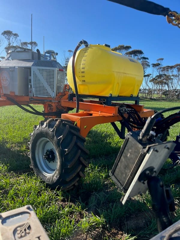 Prototype mounting of the first OWL unit on a sprayer at the University of Copenhagen. This system will be developed into a 12m wide platform.